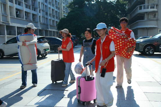 迎新筹备者:学长学姐早早就穿梭在宿舍、报到点与迎新区,把热情与细心藏进校园每一处,只为给新生打造温暖的“第一站”。