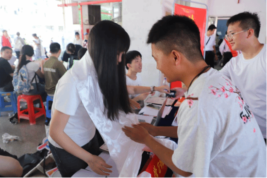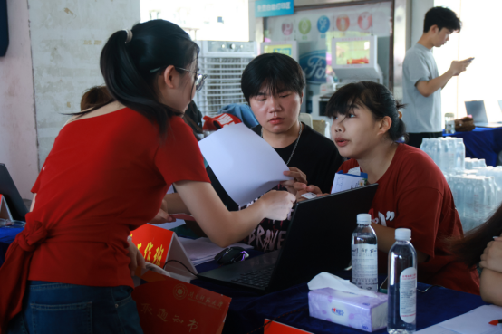 党员先锋岗:在报到点旁专设服务点,负责新生“两书同交”(入党申请书与入团申请书)相关事务,同时解答新生关于党团发展、组织生活、专业学习方向与校园事务办理流程,以严谨态度和贴心服务,为新生传递红色信仰、护航入学路。