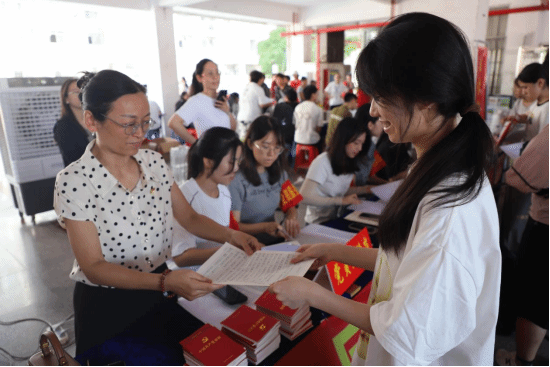 剧情线一:初心·红色启航:在党员先锋岗,新生郑重递交入党申请书与入团申请书,从老师手中接过崭新的团章或党章。指尖触碰书本的瞬间,不仅是对理想信念的宣告,更是开启责任与担当的全新起点,理想信念的种子在初秋校园里悄然扎根。