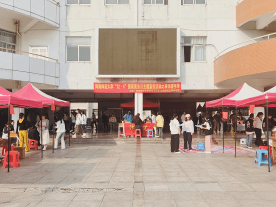 为弘扬宪法精神,由闽南师范大学学生工作处、法学院共同主办的“12.4”国家宪法日主题宣传活动之普法嘉年华在学校达理学生社区举行。本次活动以“尊法、学法、守法、用法”为脉络,活动现场,法学院学子通过设置多样化普法环节与“一站式”法律志愿服务点,将普法宣传与法律服务趣味结合,为同学们提供了一次生动鲜活的普法教育和法治文化体验。