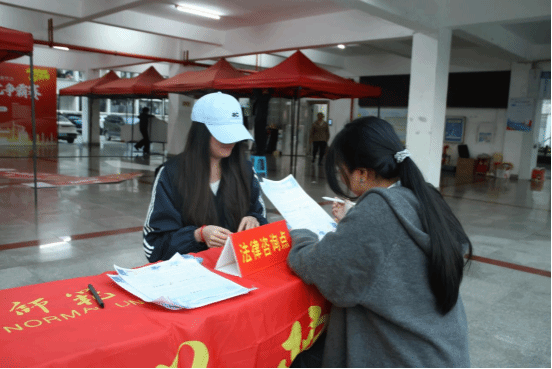 在法律服务点,志愿者们凭借专业素养与热情服务为在场师生们答疑解惑,将书本知识转化为解决实际问题的行动,在服务中提升专业素养和实务能力。