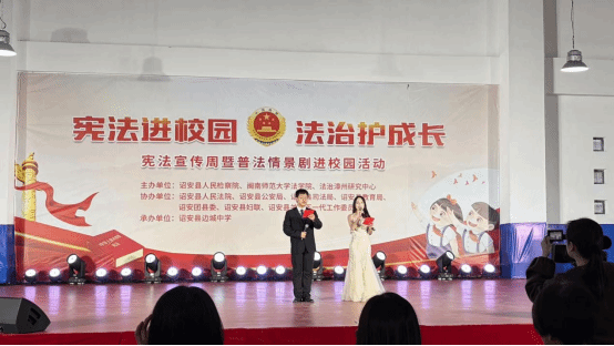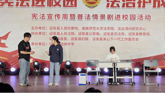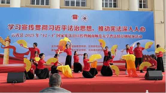 2025年12月4日是我国第十二个国家宪法日,为全面贯彻落实党的二十大和二十届历次全会精神,深入学习宣传贯彻习近平法治思想,推动宪法深入人心,加强宪法宣传教育,弘扬宪法精神,创新法治宣传教育形式,闽南师范大学法学院师生赴漳州市云霄县人民公园与诏安县边城中学两地开展普法情景剧展演活动。