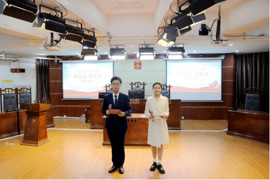 治国凭圭臬,安邦靠准绳。为深入学习贯彻习近平法治思想,推动宪法精神在青年群体中落地生根,11月29日,由学生工作处与法学院联合主办的闽南师范大学“学宪法 讲宪法”演讲比赛在博文楼西区二楼阶梯教室正式启幕。来自各学院的优秀选手齐聚一堂,以青春之声传递法治力量,让法治理念在校园内持续回响。
