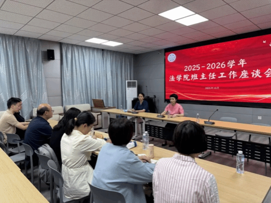 近日,法学院在博文楼西区109会议室举行2025-2026学年班主任工作座谈会。会议由学院党委书记陈越主持,全体班主任教师参加会议。本次座谈会聚焦班主任工作的职责要求、当前存在的问题以及新学期重点工作,与会教师围绕相关议题展开深入交流,旨在进一步提升班级管理水平和学生教育质量。