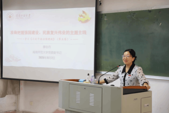 11月7日上午,闽南师范大学党委副书记廖志丹走进法学院课堂,为学生们讲授了一堂题为“准确把握强国建设、民族复兴伟业的主题主线——学习《习近平谈治国理政》第五卷”的形势与政策课。课程系统阐释了《习近平谈治国理政》第五卷的核心要义,引导学生深入理解中国式现代化的理论体系和实践要求。