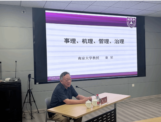 讲座中,童星教授以深邃的学术视野与严谨的思辨逻辑,直指实践领域的核心命题,系统阐释事理、机理、管理、治理四大核心概念,并深入剖析“四理”的内在关联。童星教授直指当前实践中的现实问题:在管理与治理层面,存在扬治理、贬管理的倾向;在“四理”认知上,存在轻视事理、机理,奢谈管理、治理的误区;在事理与机理关系上,存在轻视机理、将事理当教条的偏差,深刻点出实践中的内在张力与破局方向。